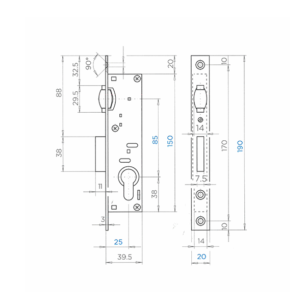 trgovačko – brava s vijkom i cilindrom 27×27 7,5 mm u skinu