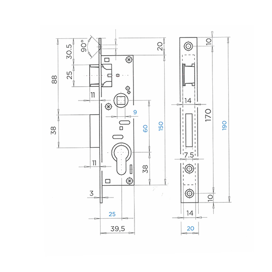 trgovačko – brava s vijkom i cilindrom 27×27 7,5mm u skinu