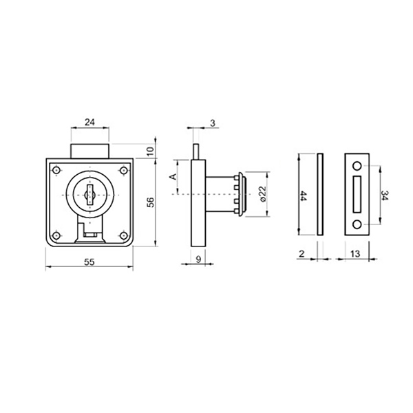 velicina fi-22, jezicak 24x10mm telo 55x56mm