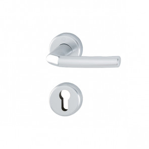 Kvaka sa rozetom za brave standardih dimenzija sa cilindrom. Izradjena od aluminijuma. Desetogodišnja garancija na funkcionalnost. Italijanski kvalitet i dizajn. Pogodna za drvena vrata.