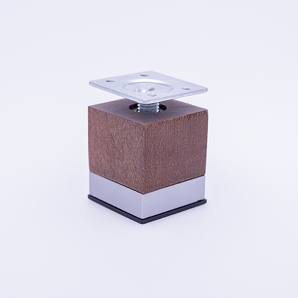 Drvena nogica za nameštaj sa postoljem visine 50mm, boje oraha, mogućnost štelovanja